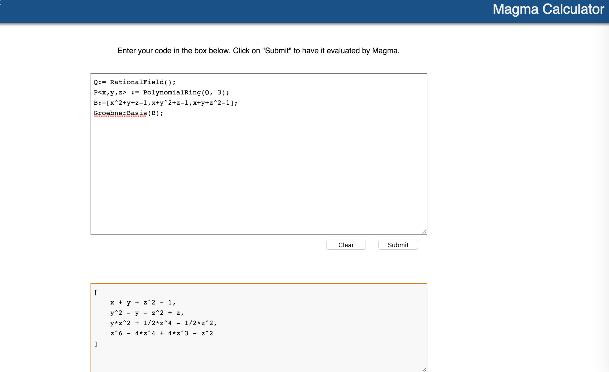 - Using Gröbner bases for solving systems of arbitrary polynomial equations. "Shape lemma."